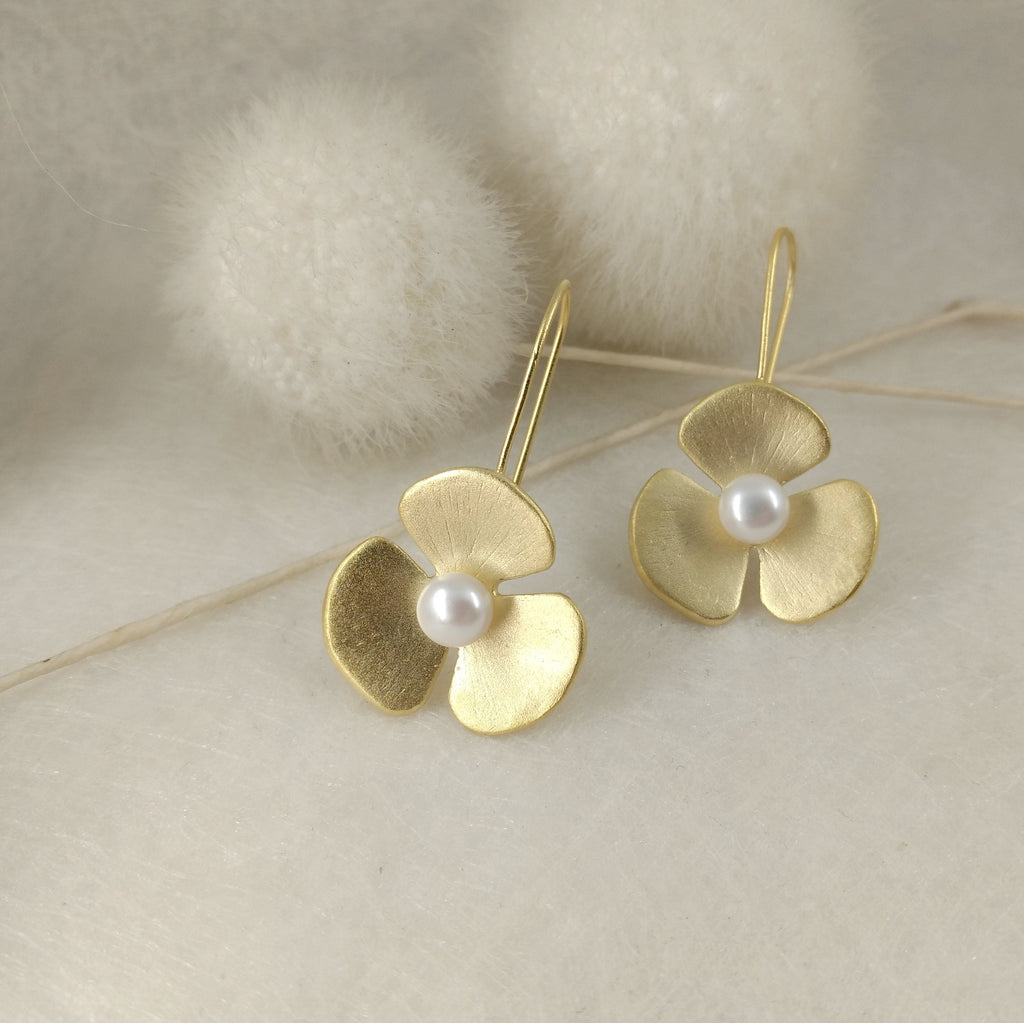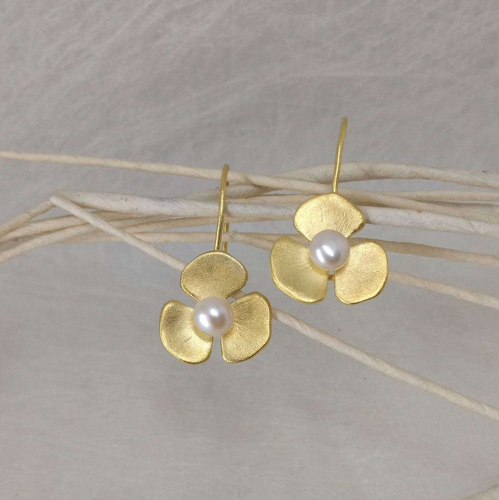 LoRe - Pendientes de gancho pequeños con perla cultivada en chapado oro 18 quilates