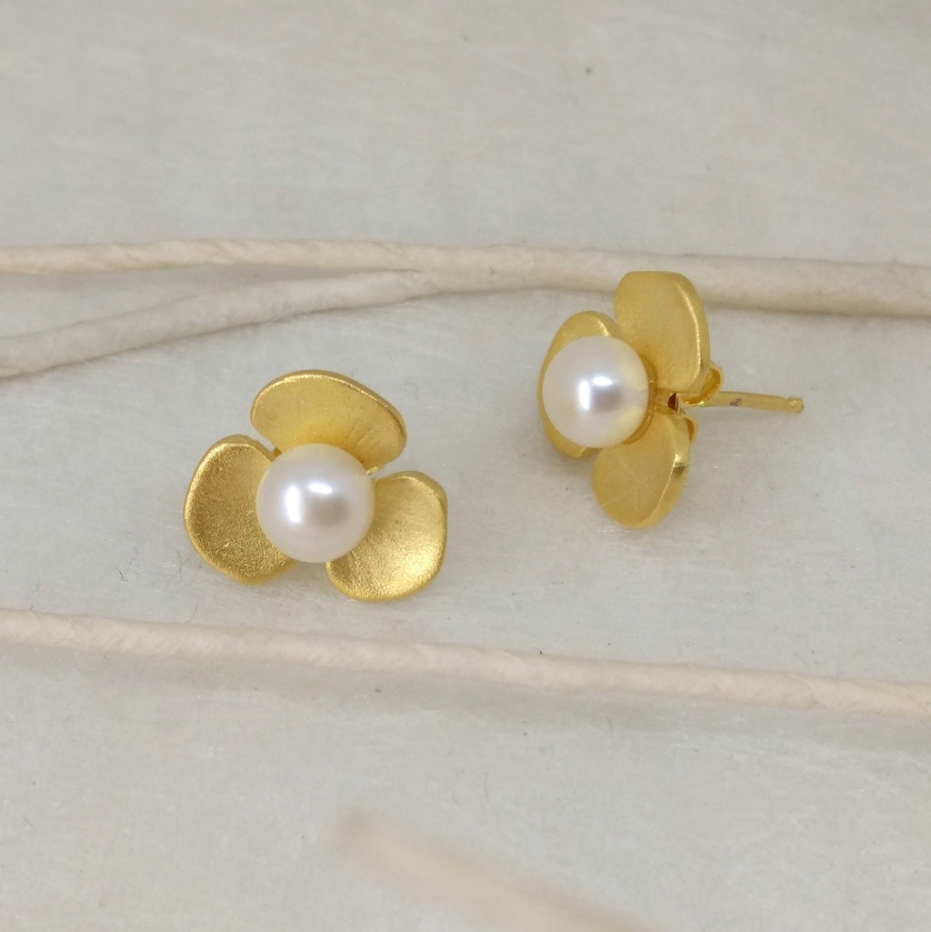 LoRe - Pendientes botón pequeño con perla cultivada en chapado oro 18 kilates