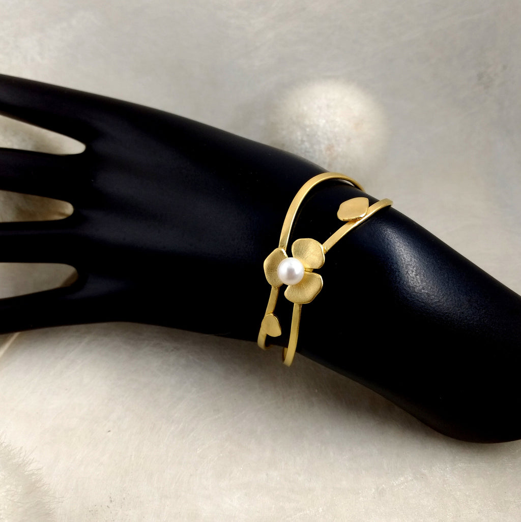 LoRe - Pulsera abierta con perla cultivada en chapado oro
